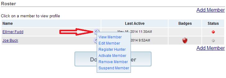 Select Club Roster from the sidebar menu  and then click on the gear icon next to the members name as shown below.
